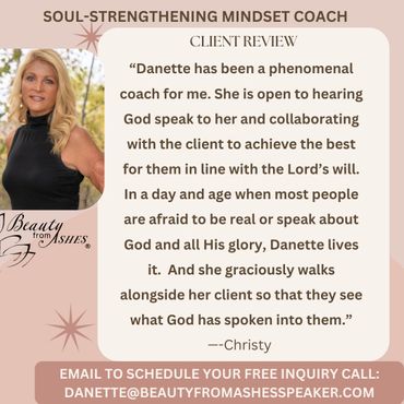 As the first severely scarred woman to win a prestigious state beauty pageant title, Danette is an expert in RISING ABOVE life scars - physical, mental, and emotional. Whether through a microphone, through the pages of her book, or connecting one-on-one with a coaching client she draws from her journey of incredible healing to help others find beauty in their life ashes. Danette's passion is to help others build resilience, boost confidence, and cultivate lasting inner peace.